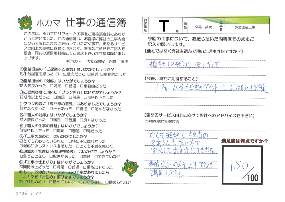 【期待すること】リフォームや住宅のペイントもお願いする予定